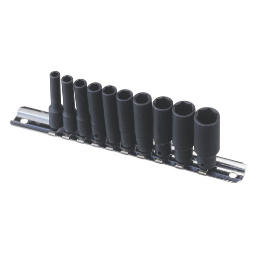 Ens. 10 douilles à chocs profondes 1/2" (Métrique)