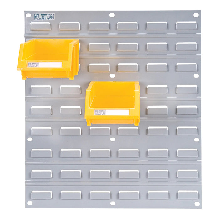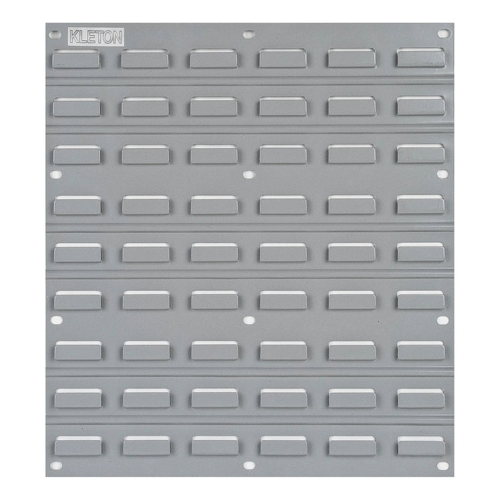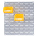 Ce panneau de métal vous permet de fixer vos bacs en plastique au mur et de les organiser à votre guise.