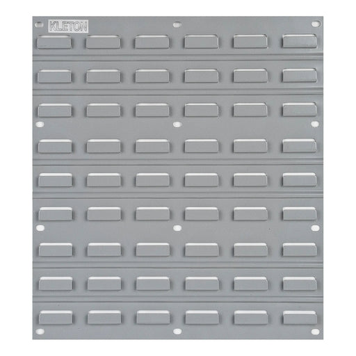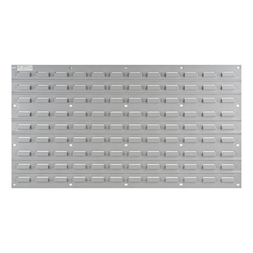 Ce panneau de métal vous permet de fixer vos bacs en plastique au mur et de les organiser à votre guise.