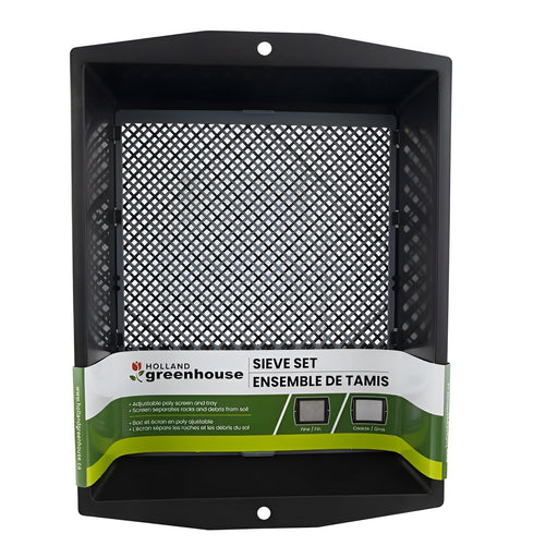 Cet ensemble de tamis ajustable est composé d’un plateau et d’un tamis. Il vous permet de séparer la terre et le sable des roches et des débris.