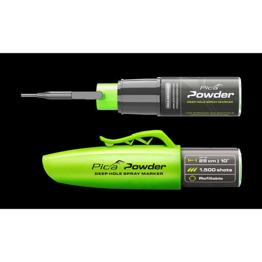 Ce marqueur à poudre vert de Pica est de taille compacte. Il est idéal pour marquer les trous profonds.