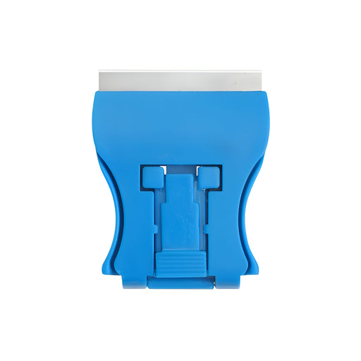 Ce grattoir miniature est muni d'un manche en plastique et fonctionne avec des lames de rasoir.